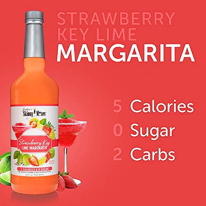 Jordan’s Skinny Mixes Strawberry Key Lime Margarita, Sugar Free Cocktail Flavoring Mix, 32 Fl Oz